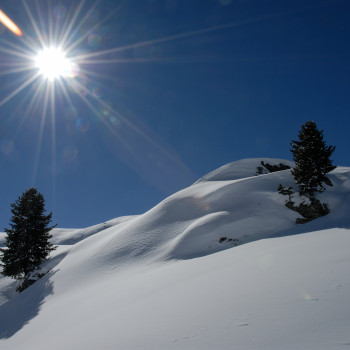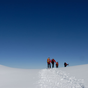 Ab Passhöhe Ibergeregg führt unsere Spur durch offene Wälder und über sanfte Hänge zum Gipfel auf 1753 m. Die ebenso leichte Abfahrt ist für Beginner wie für Gemütliche gleichermassen reine Freude. Aufstieg ca. 2 - 21/2 Std.